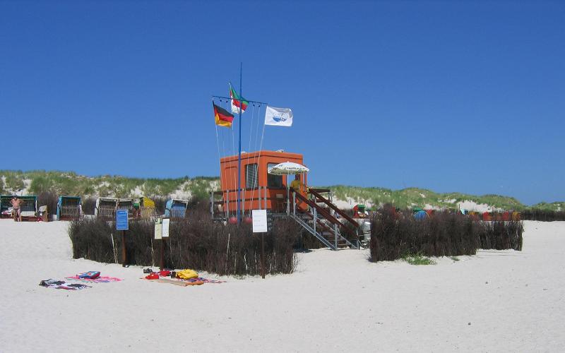Wachhütte der DLRG am Dünenstrand.