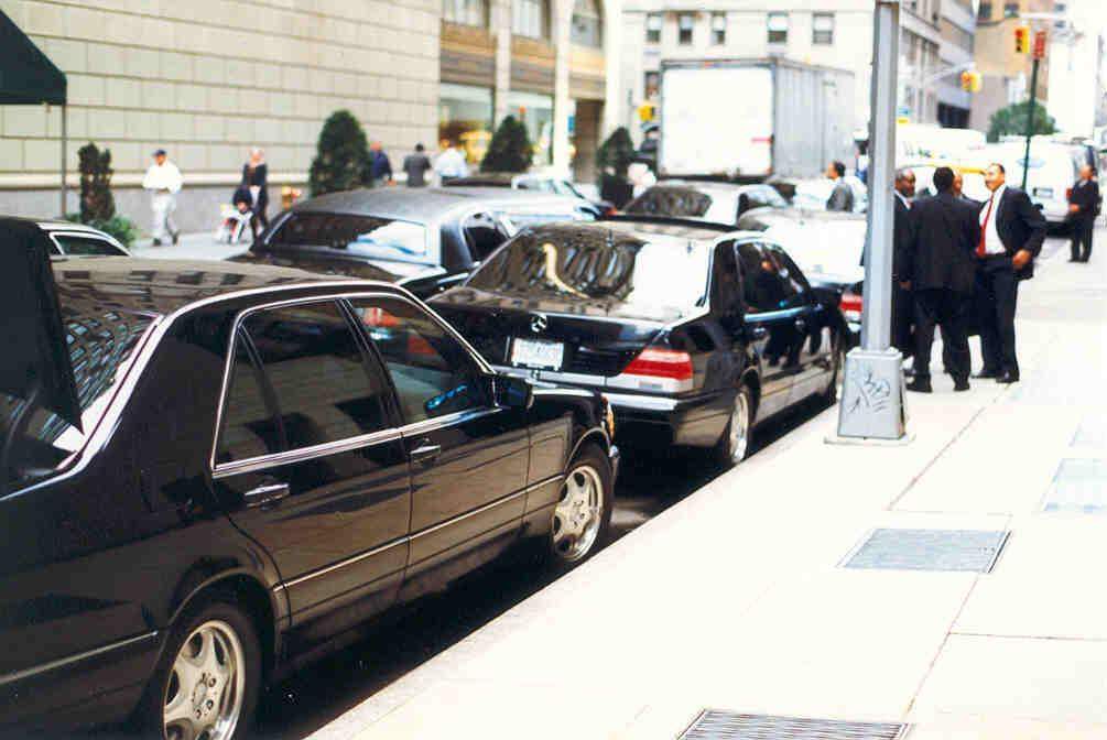 Pack Mercedes S-Klasse vor dem Hotel "Four Seasons". Alle mit extrem getönten