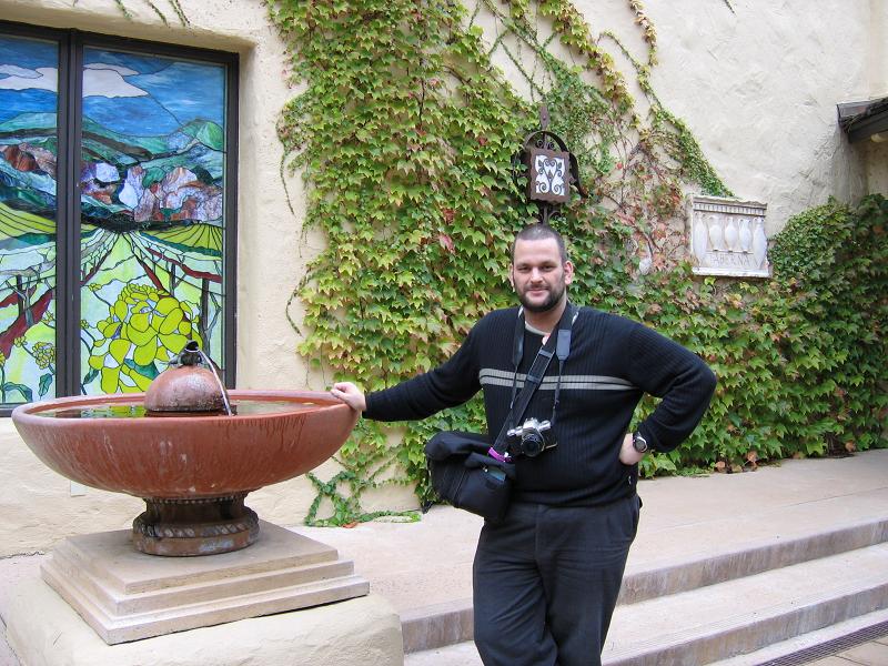 seht Ihr mich im Hof der Robert Mondavi Weinkellerei. Das im Brunnen ist
