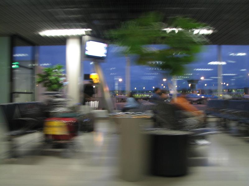 Tiefflug durch den Flughafen. Kamera auf den Handlauf des Transportbandes,